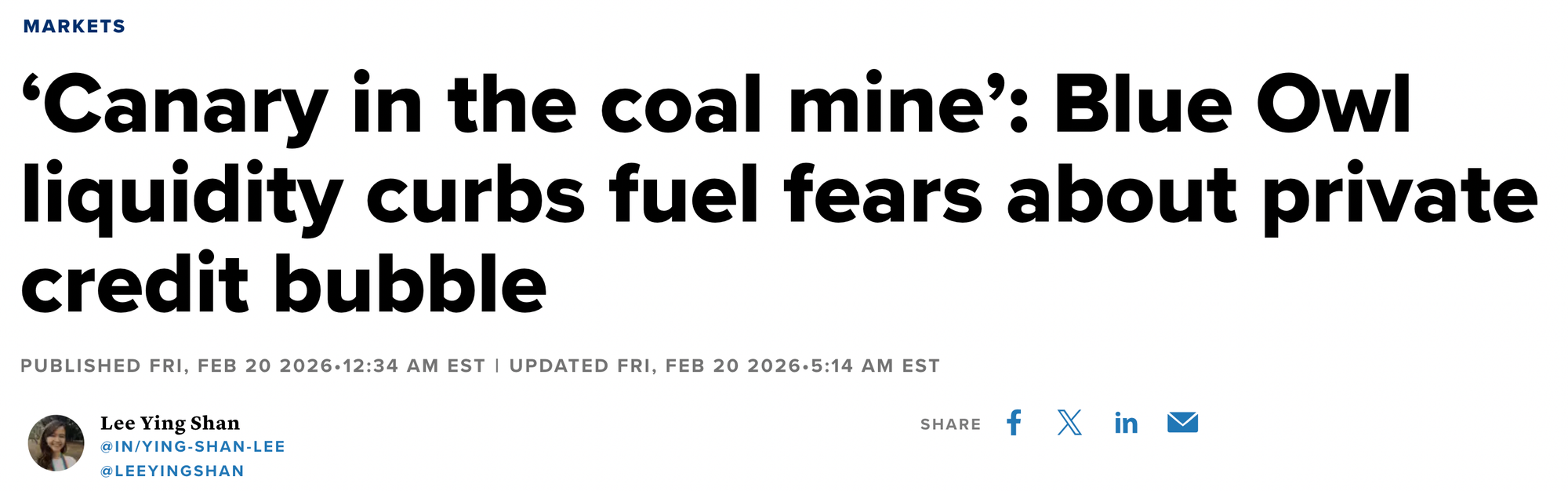 - Blue Owl's largest private credit fund (OCIC) is entirely unaffected, and this is the fund that is marketed to Canadian individual investors. In fact this fund has seen net inflows every quarter since inception in 2021, again a big contrast to funds that are having trouble meeting elevated redemptions.