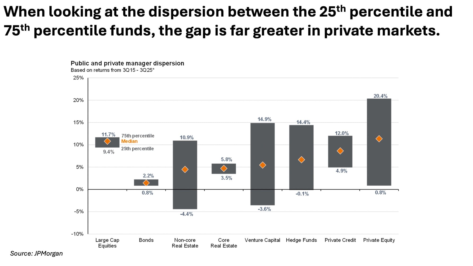 Furthermore, there is still a very wide performance difference between the best and worst funds; this gap is much larger than in public markets. So the stakes are much higher when selecting between funds, and the rewards for strong analysis are materially better than in public markets.