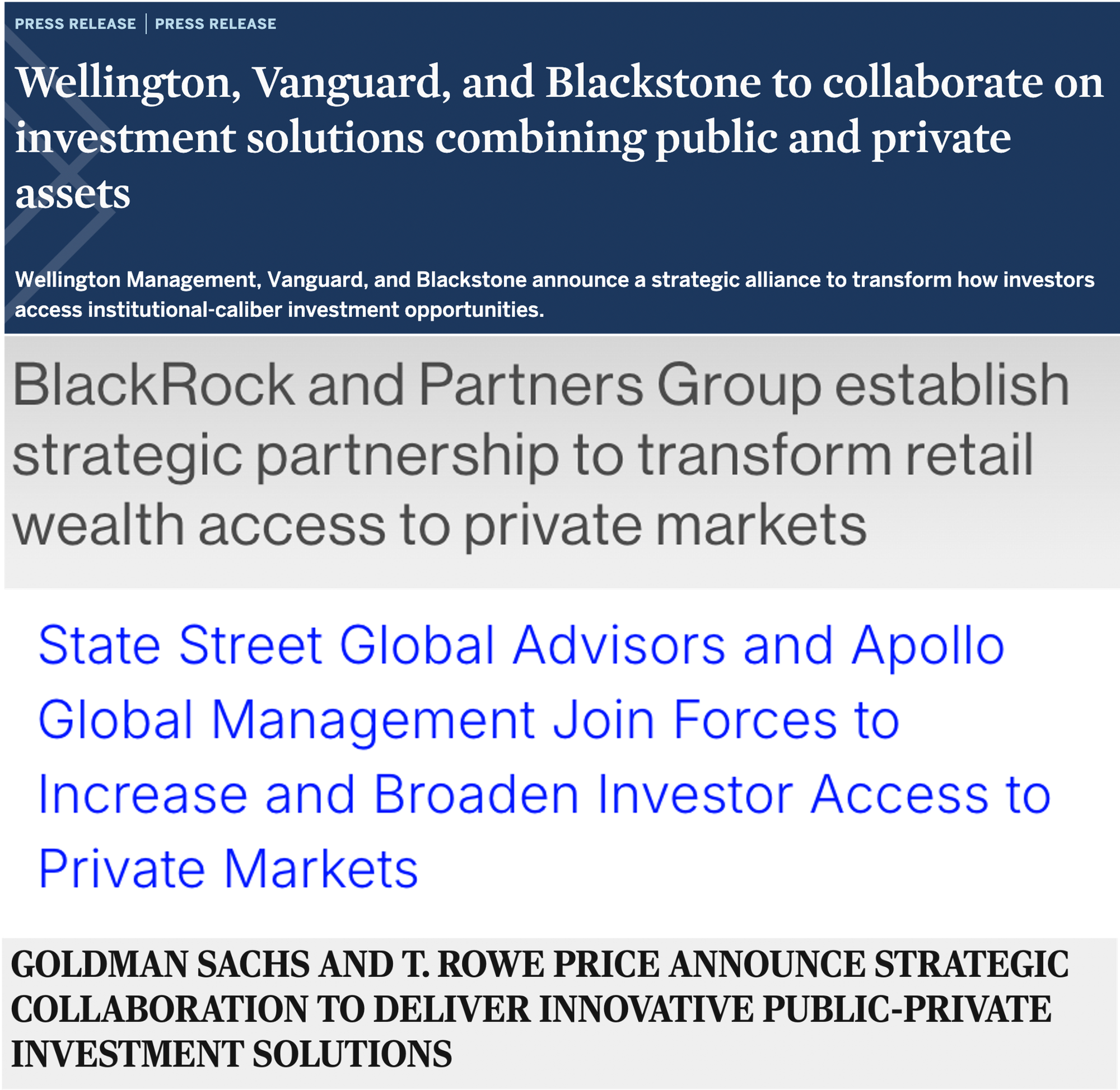 That raises an interesting question: could these partnerships help private market giants finally reach the one investor segment that has remained out of reach, individuals with smaller portfolios or higher liquidity needs? Because it’s not just these four firms making this bet; many others are following the same playbook: